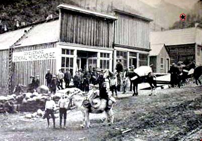 Love this picture! I have a copy, too, since it's a Crane family picture. My Great grandfather George Trumbull Crane is third from the left in the back, my Great Uncle Earl Crane is in front on the horse, and my Grandmother Marguerite Crane is in front on the donkey named Old Discovery. Earl wrote wonderful memoirs of his years growing up in Wardner and Spokane. Sadly, he didn't include any stories of your Soapy Smith.
